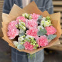 Букет из белой эустомы и розовых гвоздик в Стародубе